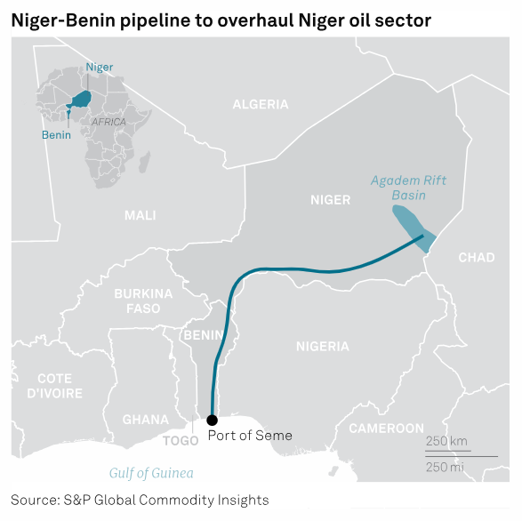 El petróleo es vital, ya que representa una fuente importante de ingresos y desarrollo industrial. Sin embargo, la infraestructura se enfrenta tanto a dificultades políticas como de seguridad. El Frente Patriótico de Liberación, grupo armado que se opone a la junta militar de Níger, ha atacado y dañado una sección del oleoducto. El 14 de junio, Níger cortó las exportaciones a través del oleoducto pero las reparaciones comenzaron hace unos días.