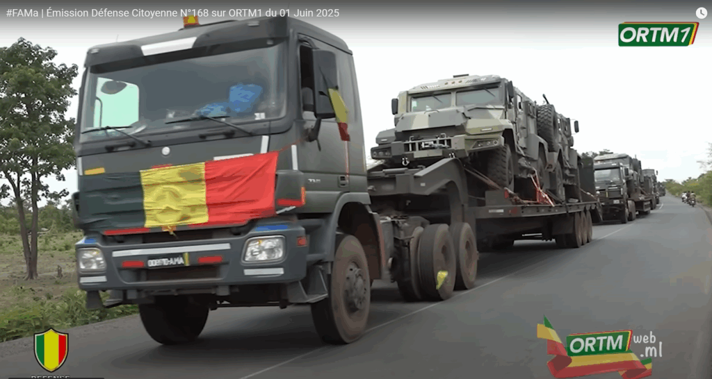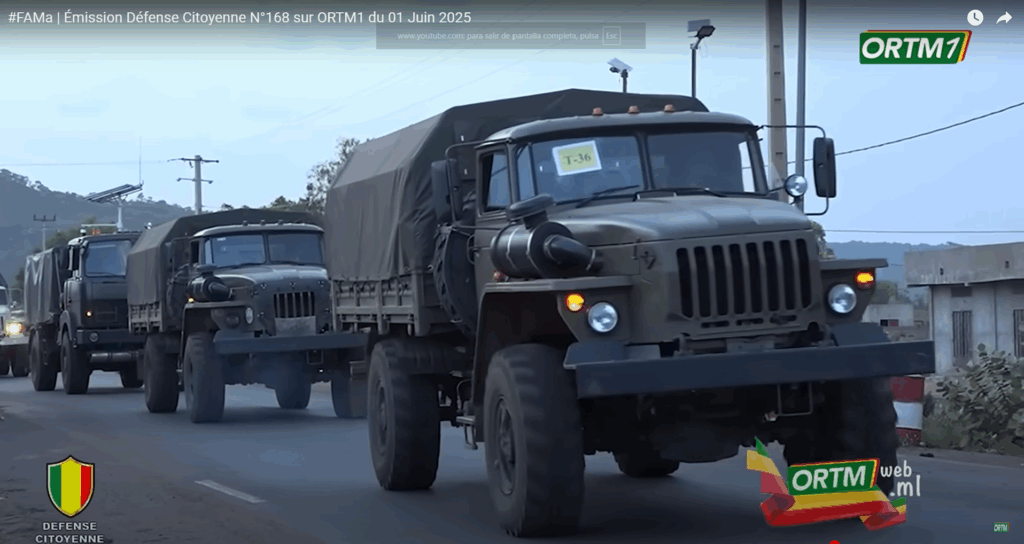 El pasado día 8 de junio el boletín Émission Défense Citoyenne N°168 el canal de televisión público maliense ORTM1 emitió imágenes sin editar del avance hacia Bamako de un convoy con material militar de origen ruso que llegó a Bamako el día 31 de mayo.