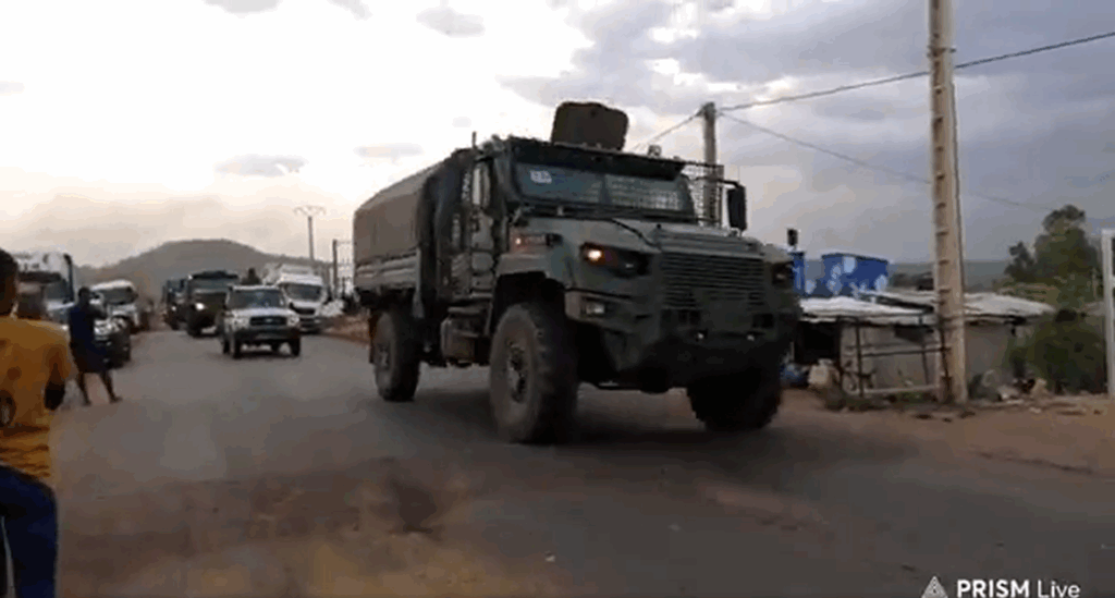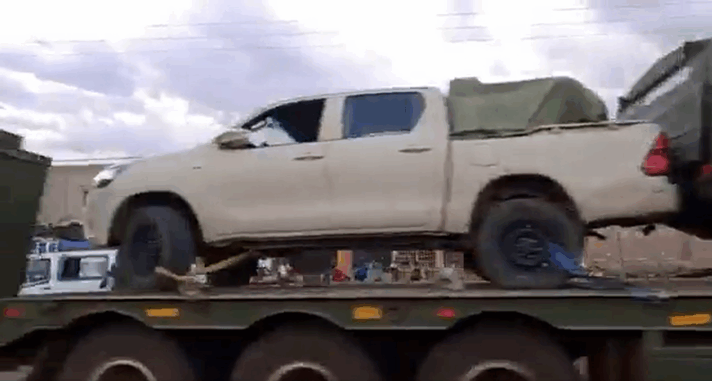 El convoy incluyó numerosos Toyota Land Cruiser HZJ79 como escoltas. En algunos casos los vehículos armados con ametralladoras pesadas W85 de 12,7mm de origen chino y/o transportando personal en la caja de carga. Al final del convoy iban tres Toyota Land Cruiser HZJ79 con montajes antiaéreos ZU-23 de 23mm pero sin los tubos montados. Tampoco se aprecia matrícula, así que es altamente probable de que se trate de vehículos nuevos.