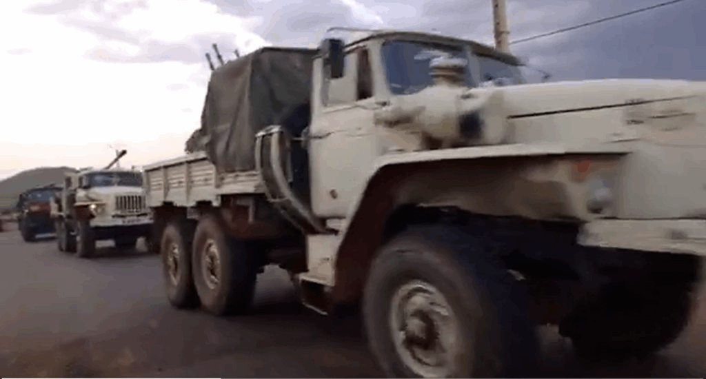 En el convoy pudo verse al menos dos piezas de artillería remolcada D-20 de 152mm y dos piezas de artillería remolcada D30 de 122mm. Además pudo verse dos morteros remolcados de retrocarga 29B Vasilek de 82mm, un arma diseñada en la vieja Guerra Fría como arma de apoyo de las fuerzas aerotransportadas. Cuenta como característica la capacidad de hacer fuego rápido gracias a clips de munición con 4 proyectiles.