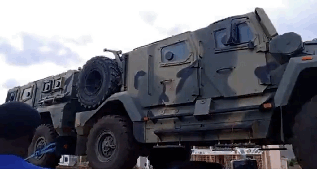 BTR-82A. Se trata de la versión más moderna de la familia de vehículos 8×8 de la serie BTR-80. Cuenta con la torre no tripulada BPPU con cañón 2A72 de 30mm y una ametralladora PKTM de 7,62mm. Al menos dos unidades recibidas por Mali en este convoy.