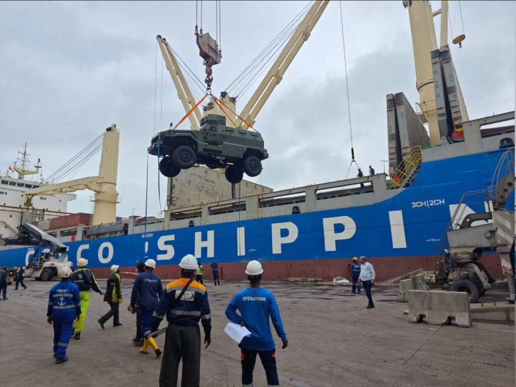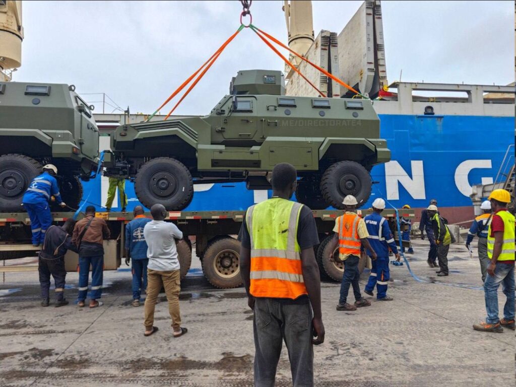 La llegada de los nuevos vehículos blindados al puerto de Conakry en Guinea fue ampliamente documentada, como podemos ver en las siguientes fotos: