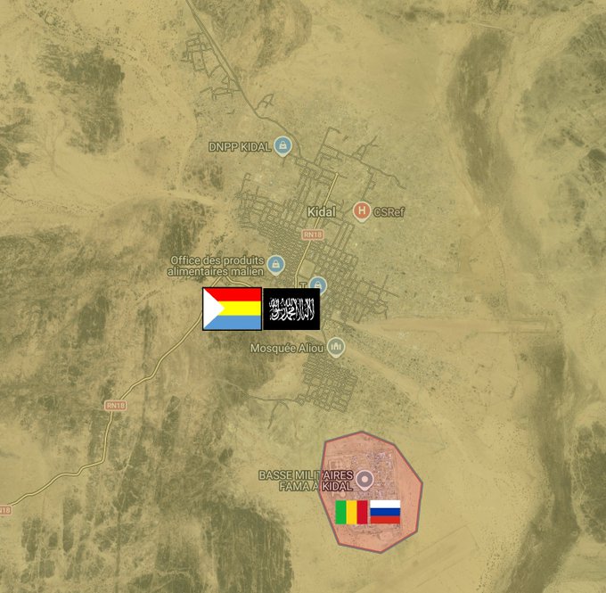 Tras la caída de Kidal, las fuerzas del FLA habrían llevado a cabo un «rastrillado de la ciudad» en busca de fuerzas gubernamentales aisladas. Se difundió un vídeo de un supuesto «francotirador ruso» abatido en un edificio elevado de Kidal. Sahel TV mencionó la existencia de negociaciones para permitir la salida de las fuerzas rusas. El perfil ruso Rybar Africa informó que «combatientes del Cuerpo Africano y unidades de FAMa se han atrincherado en un antiguo campamento de la ONU en las afueras del sur». Una información corroborada por el FLA que en la noche del día 25 emitió un comunicado en el que anunciaba haber tomado Kidal pero que «queda un pequeño reducto de resistencia residual, compuesto por mercenarios rusos del Cuerpo Africano y algunos soldados malienses atrincherados en el antiguo campamento de la MINUSMA».