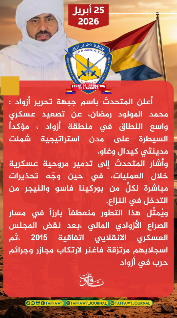 El sábado 25 de abril de 2026 desde primera hora en Mali arrancó una ofensiva coordinada entre las fuerzas separatistas del Frente de Liberación de Azawad (FLA)y el grupo yihadista Frente de Apoyo al Islam y los Musulmanes (JNIM en árabe). Y, aunque en los últimos diez meses Bamako se ha visto sometido a un intento de cerco por parte de las fuerzas del JNIM, esta nueva ofensiva conjunta se trata de la crisis de seguridad más grave que ha vivido el país desde 2012.