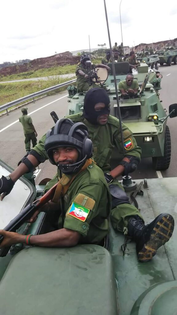 Guinea Ecuatorial es un país ubicado en la costa de África Central y por tanto no sólo no tiene vinculación alguna con el Sahel sino que no pertenece a la Comunidad Económica de Estados de África Occidental (CEDEAO). Sin embargo, se ha visto sometido a las mismas dinámicas de los países del Sahel, convertido en una casilla del tablero de juego geopolítico africano del siglo XXI. Como veremos en otra ocasión, Guinea Ecuatorial ha firmado un acuerdo de cooperación militar con Rusia. Mientras tanto, lleva años en el punto de mira de China en su estrategia de creación de un “collar de perlas africano” formado por puertos que rodean el continente, mientras se especula sobre la posibilidad de una base naval china en Guinea Ecuatorial que no ha terminado de materializarse. Lo que sí se constata es el interés de China por profundizar en sus relaciones con Guinea Ecuatorial. Las fuerzas armadas y los cuerpos de seguridad del Estado de Guinea Ecuatorial han recibido en los últimos años diversos materiales procedentes de China. Los registros de la base de datos de transferencias de armas del Instituto de Investigación para la Paz Internacional de Estocolmo (SIPRI) recogen un contrato firmado en 2017 por la venta de 26 blindados WZ551 y 6 portamorteros SM-4 de 120mm. Los vehículos fueron entregados el año siguiente. Más adelante, en 2020, se produjo la venta de 25 lanzadores de misiles anticarro Red Arrow 8, que fueron entregados nuevamente el año posterior a la firma del contrato. La proliferación de fotos tomadas por los propios militares ecuatoguineanos que luego circulan en redes sociales se ha convertido en la principal vía para confirmar la llegada de material militar a Guinea Ecuatorial. Muchas de ellas han sido recopiladas en el foro acig.org durante años por el usuario chaika2018. Así, podemos confirmar la presencia en Guinea Ecuatorial de los blindados WZ551 producidos en China por el conglomerado industrial NORINCO. Se trata de un vehículo de transporte de tropas en configuración 6×6 que China ha exportado a una larga lista de países africanos (incluyendo Mali, Níger Senegal y Chad). Los vehículos WZ551 en servicio en Guinea Ecuatorial aparecen en dos configuraciones. Una con una torre tripulada individual con cañón de 20 a 30 milímetros y ametralladora coaxial. Y otra con montaje de ametralladora W85 de 12,7mm en la torreta sobre el puesto del comandante del vehículo. La base de datos del SIPRI recoge la transferencia de 26 vehículos WZ551 sin especificar variantes. Podemos constatar la presencia en Guinea Ecuatorial de la versión cazacarros PTL-02. La transferencia de 6 vehículos de la variante portamorteros SM4 sí aparece registrada en la base de datos del SIPRI y su presencia en Guinea Ecuatorial queda confirmada. Algunos de los vehículos WZ551 aparecen pintados de azul, el mismo color de otros blindados que aparecen identificados con el rótulo “Policía”. Por tanto, podemos suponer que algunos de los WZ551 no sólo sirven en las fuerzas armadas sino también en fuerzas policiales. Aparte de los vehículos WZ551 y sus variantes podemos constatar la presencia del blindado ZFB-05 en Guinea Ecuatorial, un vehículo producido en China por la empresa Shaanxi Baoji Special Vehicles, sirviendo tanto en el ejército como en la policía. Se trata de un vehículo de bajo coste exportado, entre otros países, a Níger y Chad. También podemos confirmar la presencia en Guinea Ecuatorial del vehículo Dongfeng EQ2050, copia china del conocido vehículo militar estadounidense Hummer. Además de su versión protegida CSK-131. Comprobamos la presencia en Guinea Ecuatorial de camiones Beiben, una marca comercial del grupo NORINCO. Y por último encontramos constancia de la presencia de todoterrenos Beijing BJ80, un producto de la corporación Beijing Auto Industry Corporation (BAIC). Aparte de la presencia de vehículos blindados, camiones y todoterrenos de origen chino en las fuerzas armadas de Guinea Ecuatorial, podemos constatar la presencia de armas ligeras como es el caso del fusil de asalto Tipo 56, variante china del AKM. Es fácilmente reconocible por el punto de mira y la bayoneta plegable bajo el cañón. Las compras de armamento chino por parte de Guinea Ecuatorial se han visto acompañadas por la presencia de oficiales chinos en el país, reconocibles por su fisonomía y el camuflaje Tipo 07. Las fuerzas armadas de Guinea Ecuatorial emplean fusiles de asalto y patrones de camuflaje diversos. Y al igual que algunos militares emplean fusiles de asalto Tipo 56 de origen chino entre varios modelos de diversa procedencia, vemos también a algunos militares ecuatoguineanos empleando prendas con el patrón de camuflaje Tipo 07 chino de entre una amplia variedad de patrones.